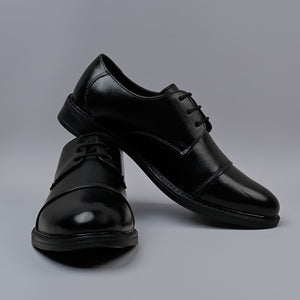 VESPER - Black Genuine Softi Leather Toe Cap Shoes