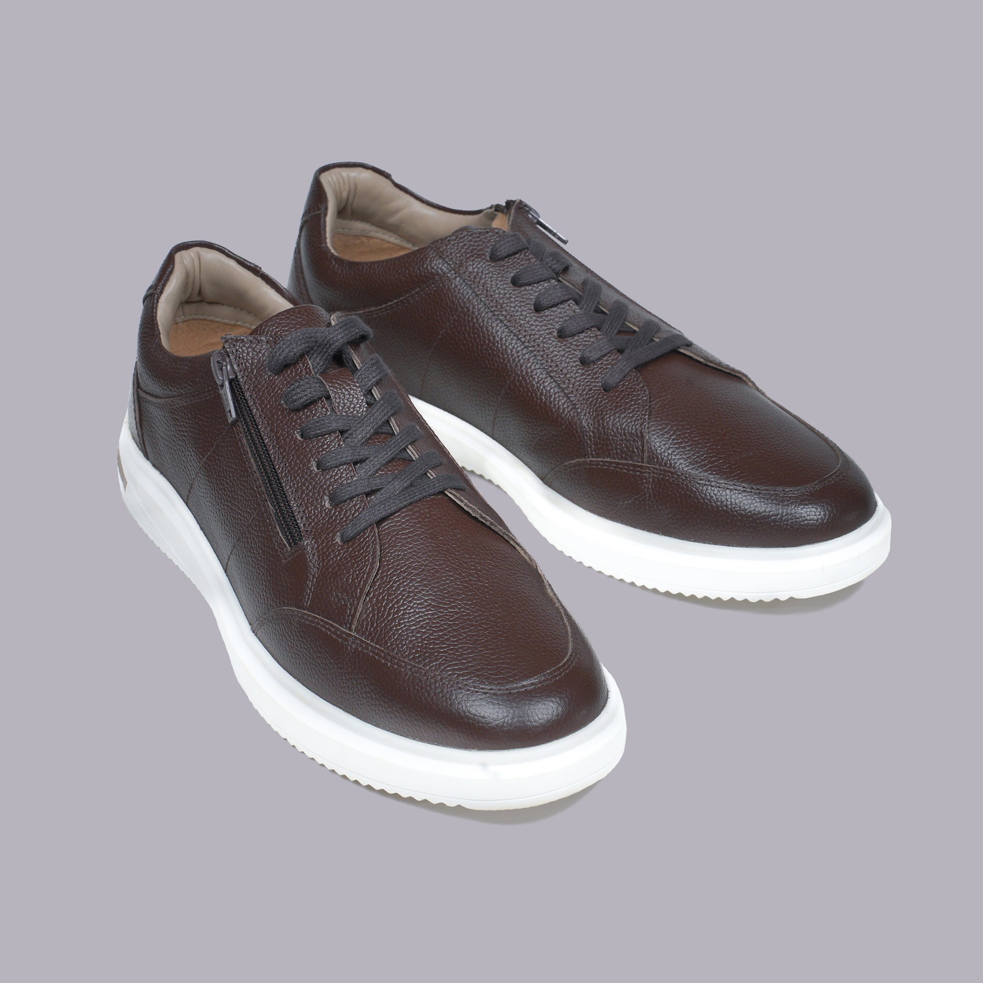 MILO - Dark Brown Pebbled Leather Sneaker with Side Zip